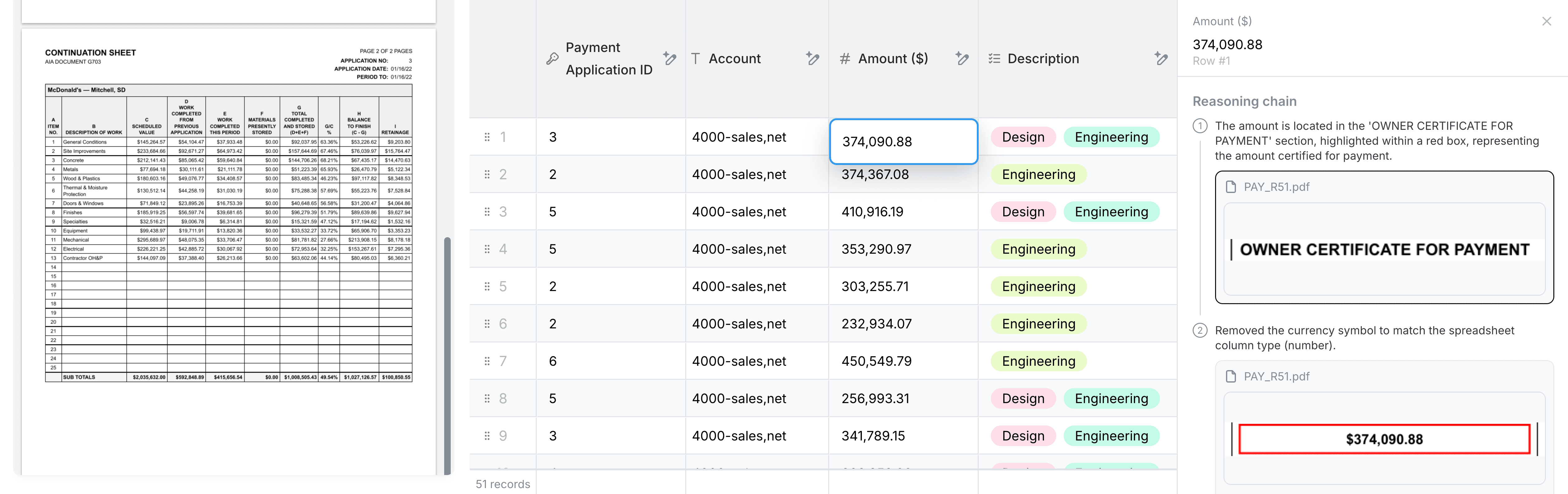 Click on any generated cell or insight to see the exact source file and reasoning chain.